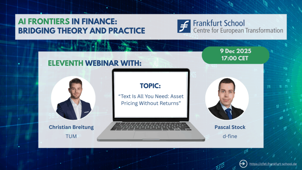 With the AI Frontiers in Finance webinar, we created a monthly webinar series dedicated to “opening the black box” as to the technical foundations of “AI in Finance” research and providing a bridge to its practical implications and business applications. We want to raise awareness of the AI applications used in academic research and their potential for broader application. This way, the webinar will differ from others by combining expertise and fostering a dialogue that enriches both the academic and professional communities.