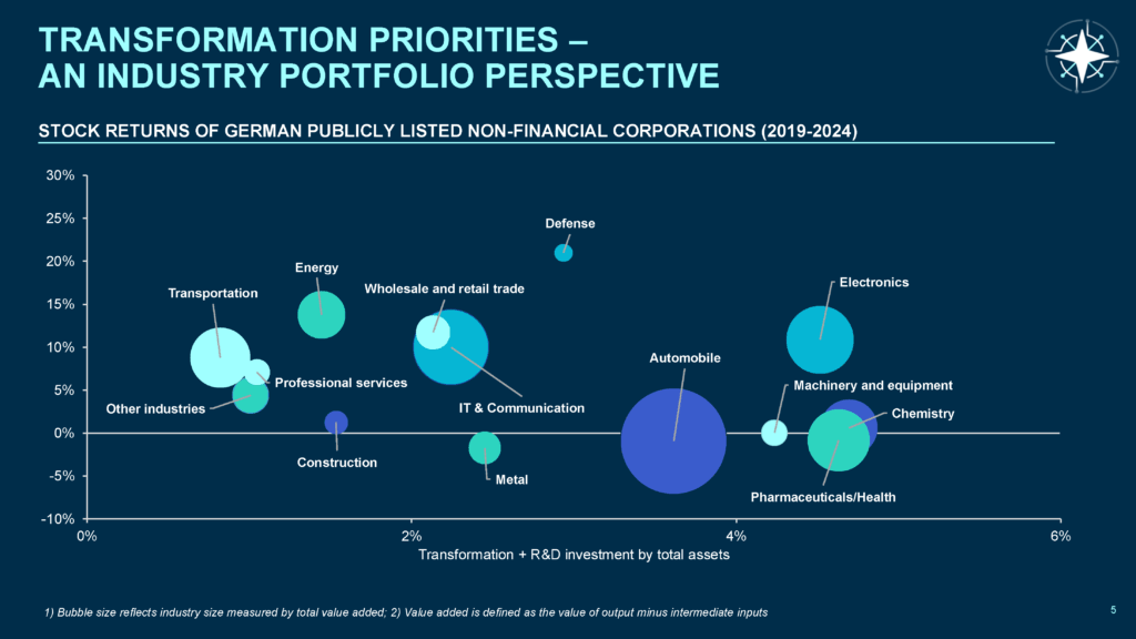 The Transformation Investment Compass is a new research tool by the Centre for European Transformation (CfET) – currently in prototype and under active development. Starting with Germany and expanding to core European economies in 2026, it tracks where transformation capital is flowing and where it is not.